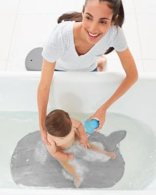 Sicher bequem baden: Die Badewannen-Matte Moby ist mit einer Antirutsch-Textur versehen. Die Polsterung macht das Sitzen besonders angenehm. Badewannen-Matte Moby von Skip Hop Antirutsch-Textur Saugnäpfe Polsterung aus PVC (phthalatfrei) Die rutschfeste, strukturierte Oberfläche sorgt dafür, dass Dein Baby beim Baden nicht hin und her rutscht. Die leichte, weiche und nachgiebige Polsterung macht das Planschen für Babys zum entspannten Erlebnis. Saugnäpfe halten die Matte immer an Ort und Stelle. Praktisch nach dem Baden: Der Walschwanz funktioniert wie ein Haken. So kannst Du die Badematte einfach an Duschkopf, Duschstange oder Handtuchhalter aufhängen. Perforationen für die Entwässerung sorgen dafür, dass die Matte schnell trocknet. Das vermindert auch die Bildung von Schimmelpilzen.