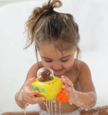 Damit Ihr kleiner Liebling sich stets auf das Planschen in der Badewanne freut, gibt es das lustige Badespielzeug „U-Boot Affe“ von Skip Hop. Besonders cool: wenn man an dem Ring zieht, beweg sich der Propeller des U-Boots!