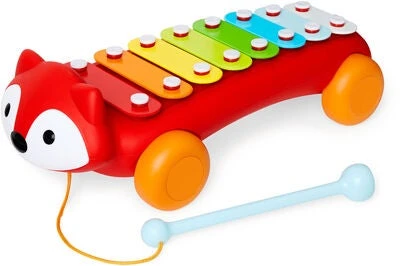 Explore&More Xylofon Fuchs von Skip Hop ist ein unterhaltsames Instrument und Nachziehspielzeug in einem! Der süße Fuchs inspiriert dazu, Musik mit den acht bunten Tönen zu machen, was die Feinmotorik und musikalische Entwicklung Deines Kindes fördert. Der Schlägel hängt fest an einer Schnur, sodass er immer in der Nähe ist. Das Xylofon besitzt Räder und kann nach dem Musizieren als Ziehspielzeug verwendet werden. Ein unterhaltsames und förderndes Spielzeug für die Kleinsten!