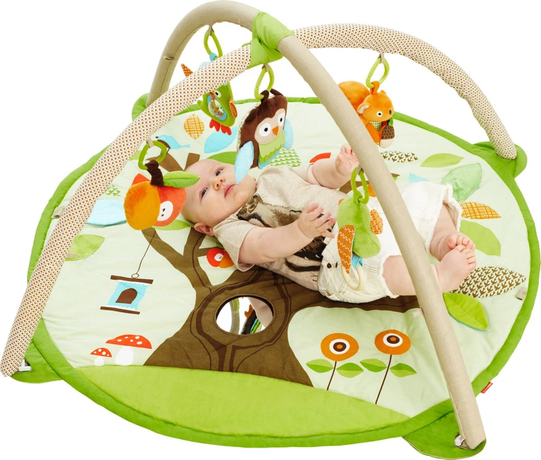 Die Spieldecke bietet 17 verschiedene Aktivitäten: Blätter biegen, abnehmbarer Spiegel (zum Waschen) in einem Baumstamm, Blumen pfeifen usw. Die Decke ist sehr geräumig. Einfach zu falten.