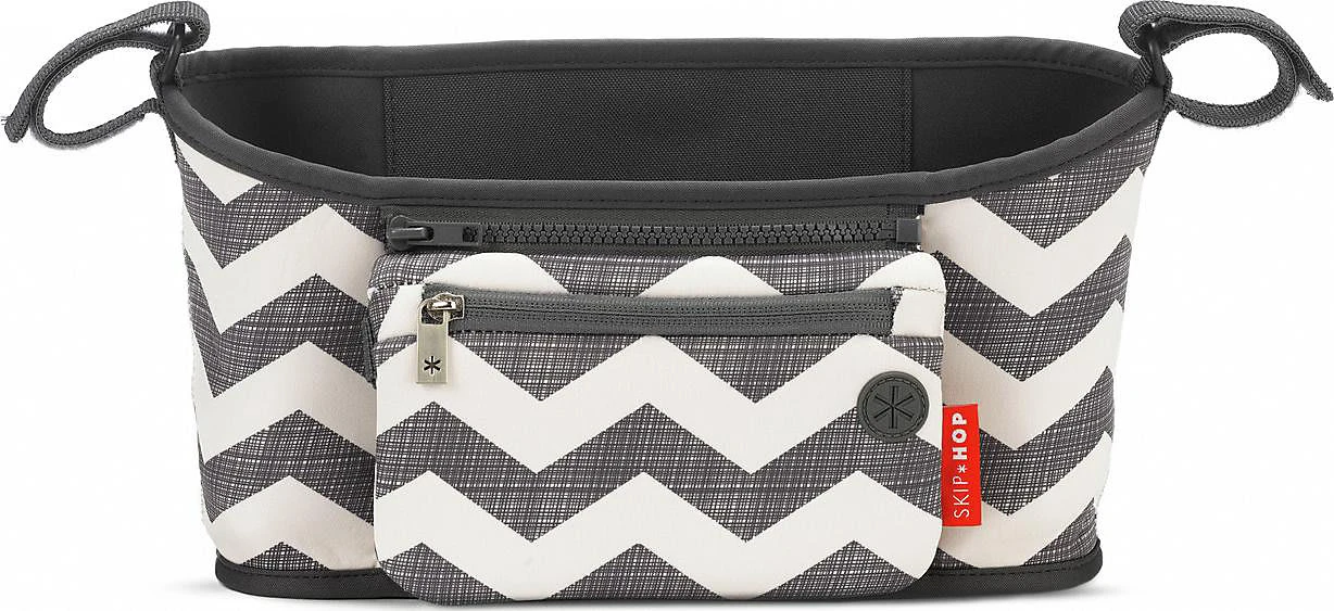Egal ob Flaschen, Becher, Spielzeug, Schlüssel oder Telefon, in diesem Kinderwagenorganizer lassen sich alle möglichen Dinge für einen Ausflug verstauen.