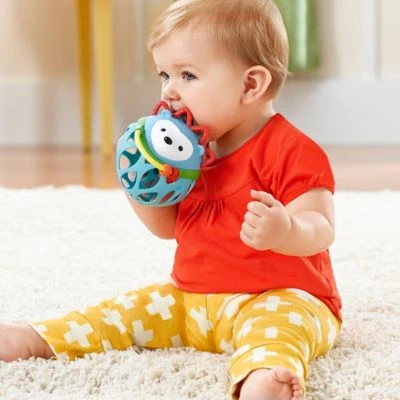 Mit der niedlichen rasselnden Kugel von Skip Hop werden viele motorische Fähigkeiten trainiert.