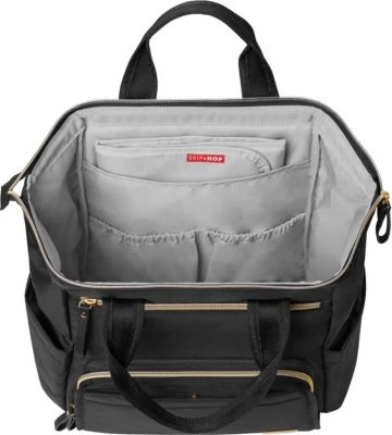 Die Wickeltasche Mainframe Wide Open Diaper Satchel macht es einfacher alles Nötige, das in dieser Tasche verstaut ist, in Windeseile zu erreichen – und dank seiner weiten Öffnung, die auch offen bleibt, ist auch alles in Sichtweite. Es besteht aus einer cleveren Kombination von weichem Material, einer schnittiger Struktur und sportlichem, federleichten Material. Das große Hauptfach hat die Besonderheit, dass es mit einem Reißverschluss schließt und viele kleine Fächer hat für alles Nötige wie Ihr Handy oder Wasserflaschen. Sie können die Tasche über der Schulter oder durch den abnehmbaren Gurt auch als Umhängetasche tragen. Damit haben Sie unterwegs die Hände frei für alles Wichtige.