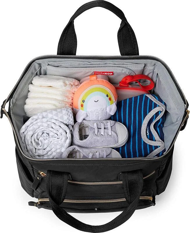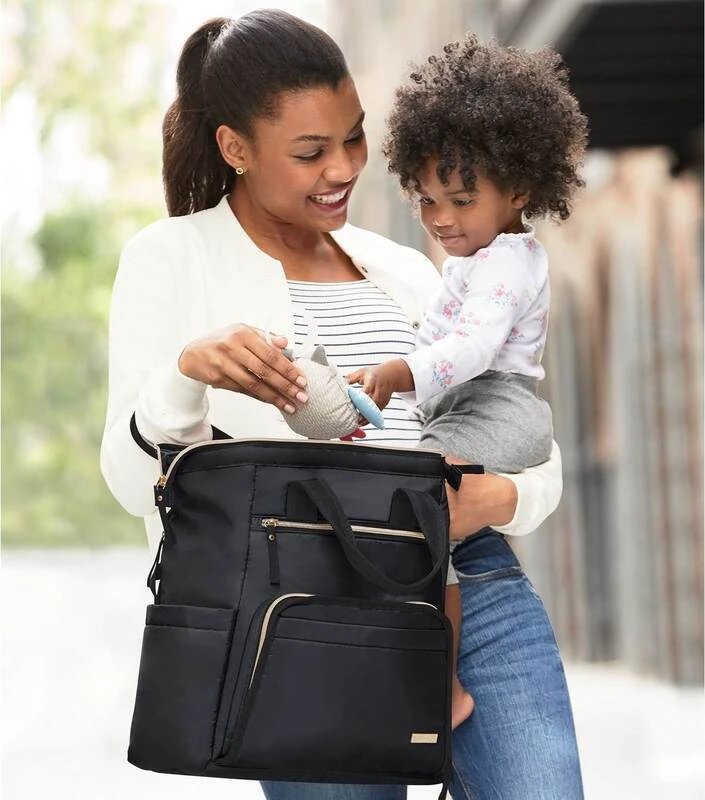 Die Tasche bietet ein großes Hauptfach mit Reißverschluss und viele Taschen für Dinge wie Handy, Wasserflasche und Schlüssel. Die verstellbaren Riemen ermöglichen es, die Tasche als Rucksack zu verwenden, und so haben Mütter ihre Hände frei, was unbezahlbar ist.