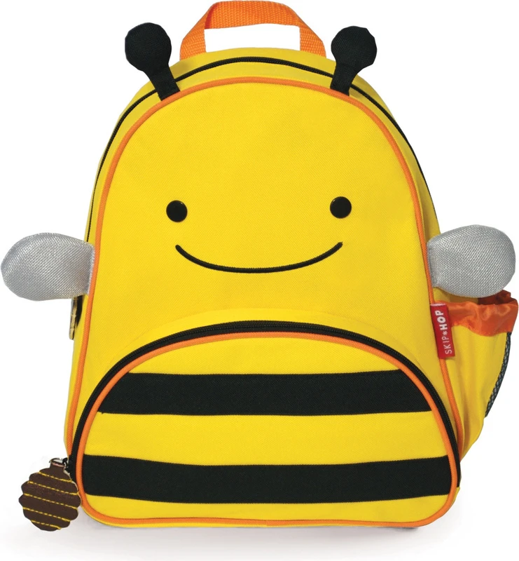 Schöner Rucksack mit Bienenmotiv. Der Rucksack verfügt über eine separate Vordertasche, ideal für zehn Personen, mit einer zusätzlichen Tasche für Buntstifte oder andere kleine Gegenstände. An der Seite befindet sich ein geräumiger Netzbeutel zum Trinken. Raffinierte Rucksackdetails passen zu den fröhlichen Reißverschlussmotiven.