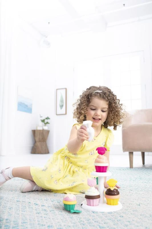 Kleine Bäcker werden es lieben, Formen und Farben mit diesem süßen Set zum selber zusammenstellen von Cupcakes zu lernen.