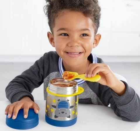 Diese schöne Edelstahl-Thermoskanne mit Aufdruck hält die Babyportion warm oder kalt. Es enthält eine praktische Gabel (Löffel + Gabel in einem), die in den Griff eingehängt werden kann. Der Halter kann auch zur Aufbewahrung von anderem Babybesteck (ähnlicher Größe) verwendet werden. Die Thermoskanne hält die zubereiteten Speisen: je nach Temperatur der zubereiteten Speisen und Außentemperatur bis zu 7 Stunden warm / und bis zu 5 Stunden kalt. Um bessere Ergebnisse zu erzielen, heizen / kühlen Sie die zubereiteten Speisen 5 Minuten lang in heißem / kaltem Wasser, bevor Sie sie in die Thermoskanne stellen.