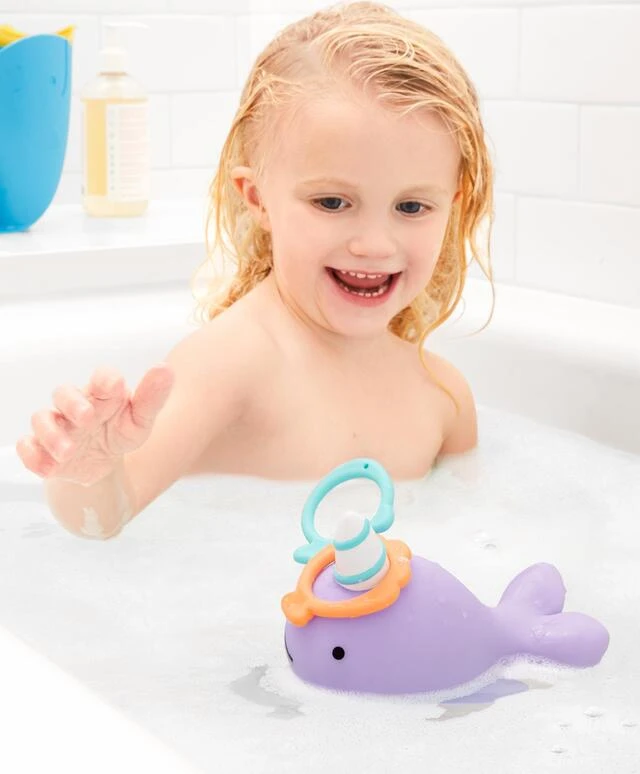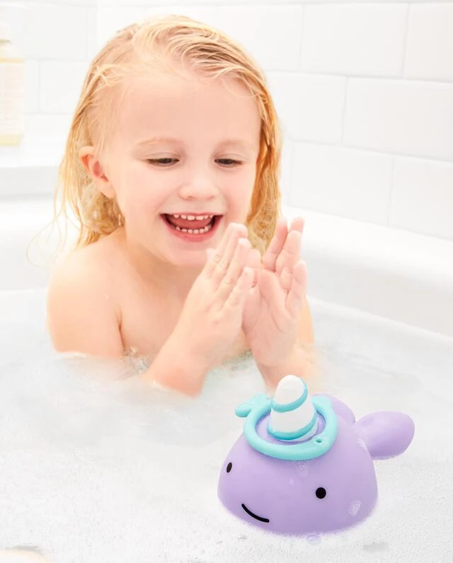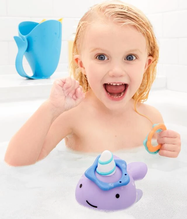 Dieser Freund in der Badewanne ist bereit, Spaß zu haben! Der entzückende Narwal ist bereit, mit Ihrem Baby zu spielen.